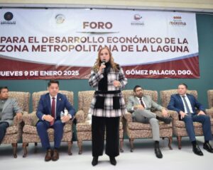 Durante el Foro para el Desarrollo Económico de la Zona Metropolitana de La Laguna, realizado en el Centro de Convenciones Posada del Río, Marina Vitela